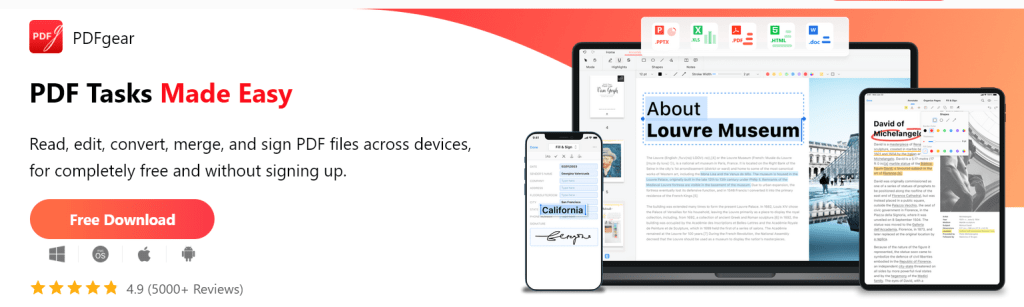 Vous voulez signer un pdf ? le transformer en image, en document word (et vice-versa) ? le scinder ou en fusionner deux ? Avant de conaitre PDFgear, j’allais sur internet, je cherchais des sites foireux qui proposent de le faire en échange de votre adresse mail pour vous spammer et tout. Depuis que j’ai PDFgear, j’ai désinstallé adobe acrobat et consort (sachant que pour lire rapidement un pdf, Edge est très agréable à utiliser), et j’utilise PDFgear dès qu’il faut remplir un document ou transformer un pdf en entre chose. Très, très utile tant que ce format du diable continuera d’être utilisé.